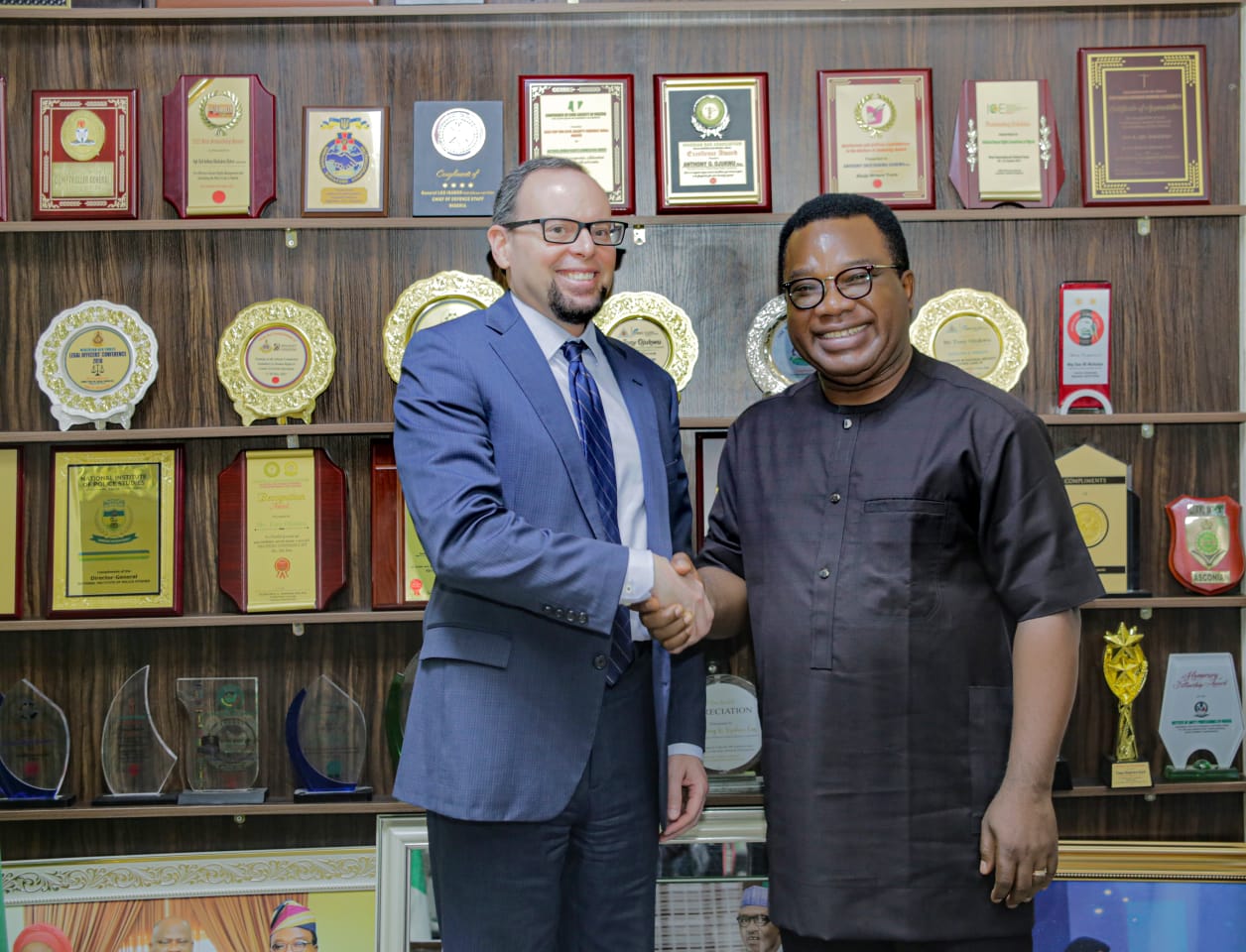 The Executive Secretary of the National Human Rights Commission, Chief Tony Ojukwu OFR, SAN has received the newly appointed Acting Deputy Chief of Mission, Embassy of the United States of America, Mr.Timothy Smith, who paid him a working visit in his office.